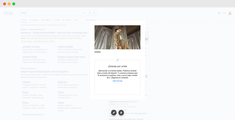 Otra forma de usar la extensión de formulario de contacto es como veis en el ejemplo de un anuncio de Adidas.