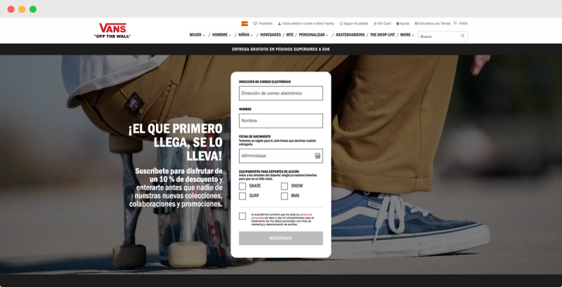 Comunican alguna de sus colecciones y también el tipo de descuento que puedes llevarte si te suscribes a su newsletter.