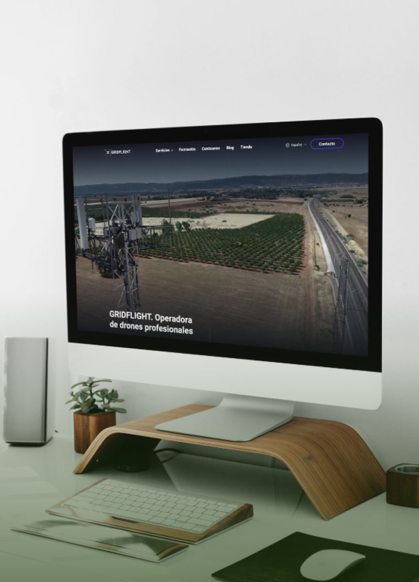 Diseño y desarrollo web para Gridflight, una empresa operadora de drones profesionales bajo la Agencia Estatal de Seguridad Aérea.