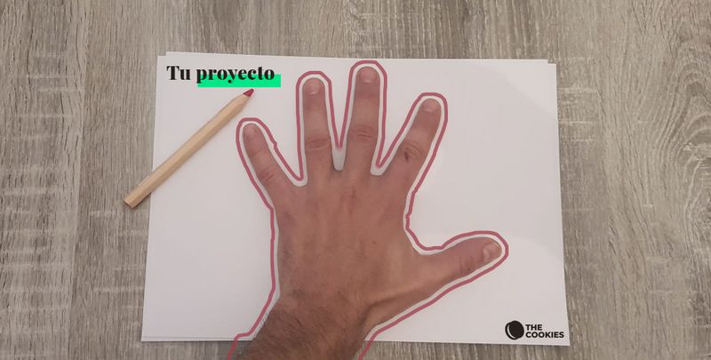 ◼︎Una mano sobre un papel donde se ha trazado con precisión su controrno